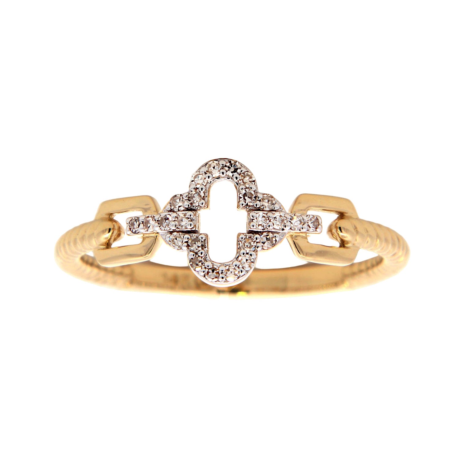 Elevate your style with this captivating yellow gold ring. Delicately crafted, it features a brilliant round cut diamonds adding a touch of sparkle and sophistication. 1/10cttw.