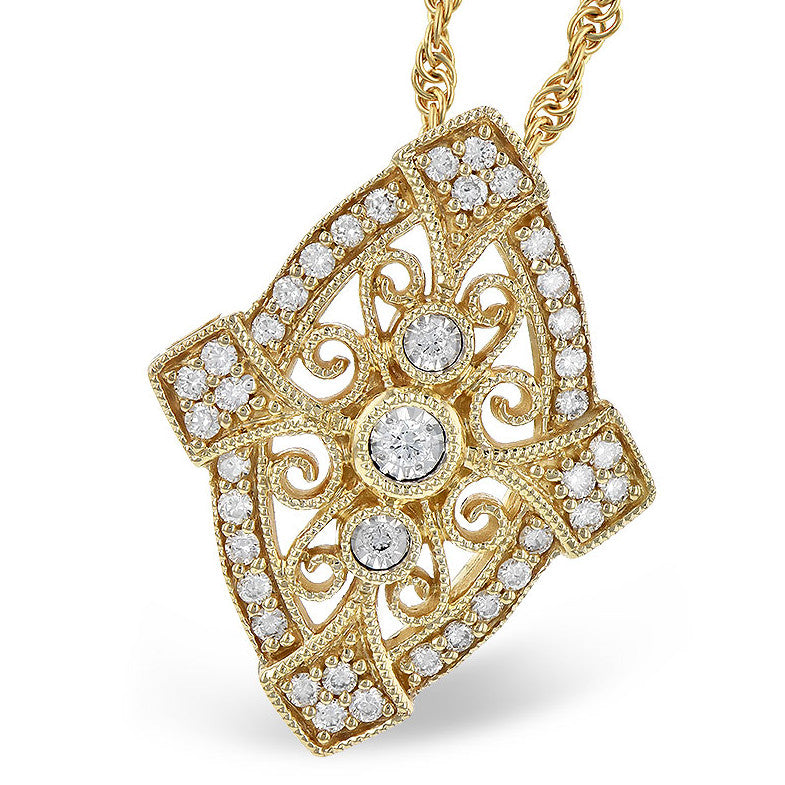 1/5 Cttw. Diamonds Vintage Inspired Pendant in 14 Karat Yellow Gold