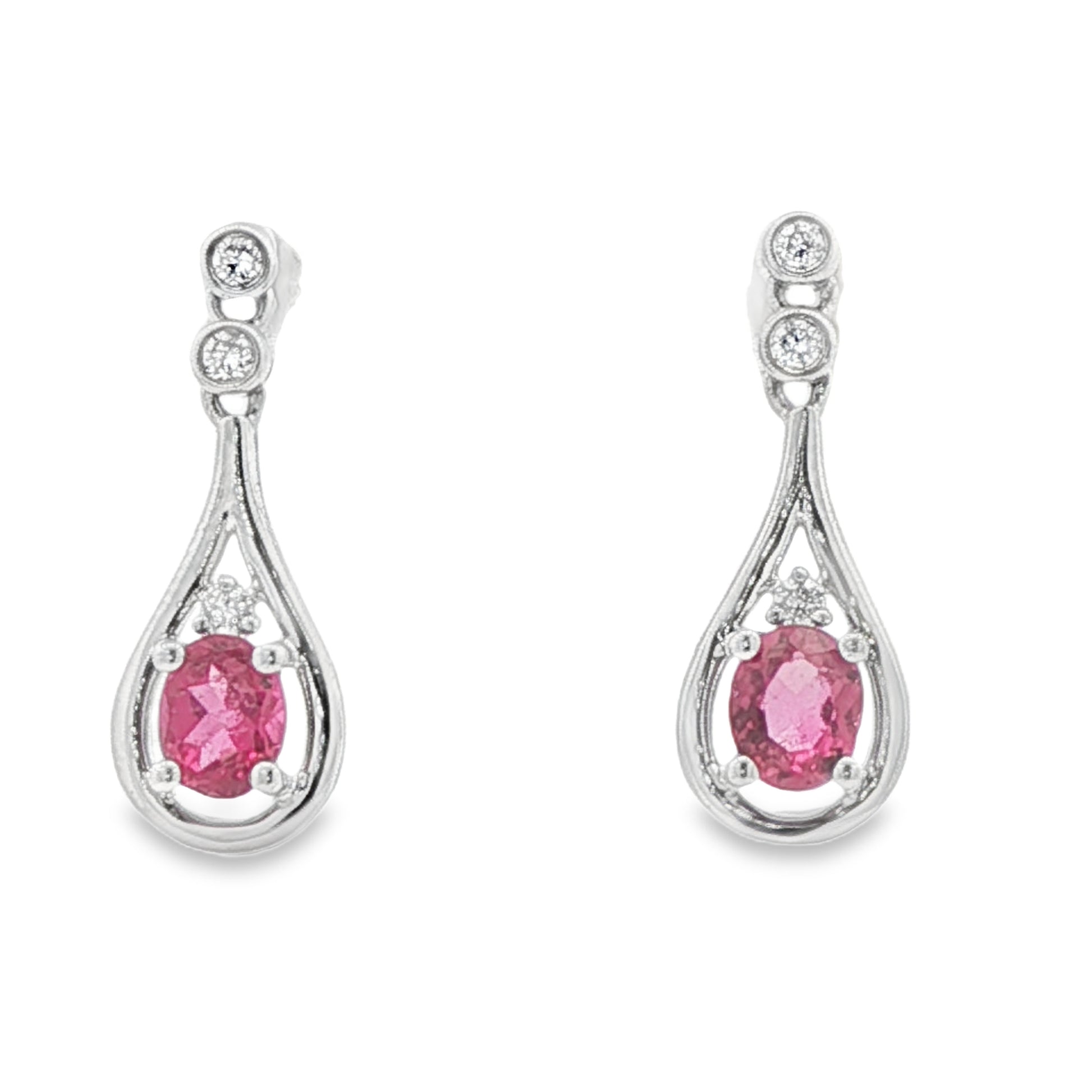 1/10Cttw Tear Drop Earrings 14 Karat White Gold.