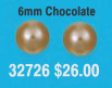 Allergy Free Simulated Chocolate Pearl Stud Earrings With Friction Backs in Surgical Stainless Steel and Measuring 6mm.