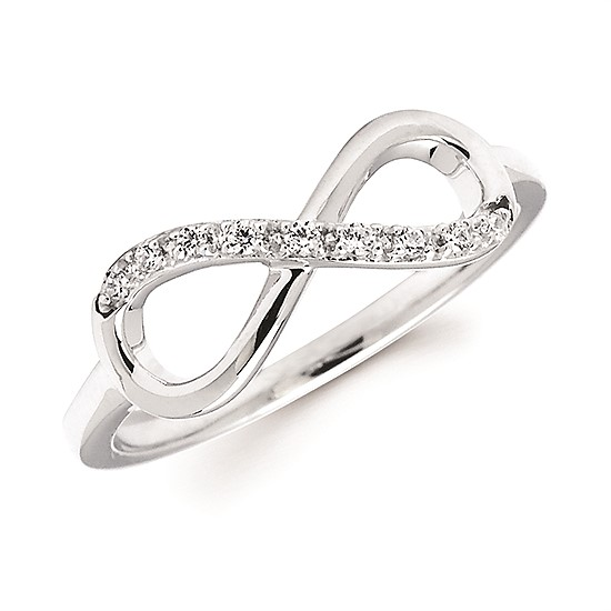 Diamonds Infinity Fashion Ring in 14 Karat White Gold with Traditional shank in a size 6.5.