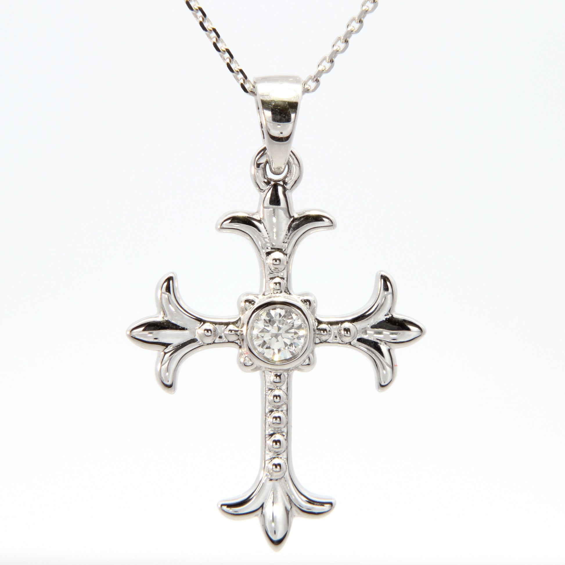 1/10 Cttw. Diamond Cross Pendant in 14 Karat White Gold