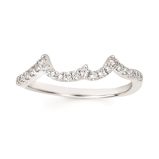 14 Karat White Gold Tracer Band With Traditional Straight Shank Featuring Round Brilliant Cut Diamonds Appearing SI in Clarity , G/H in Color With an Approximate Total Weight of 0.23Cts Set in Scalloped Setting .