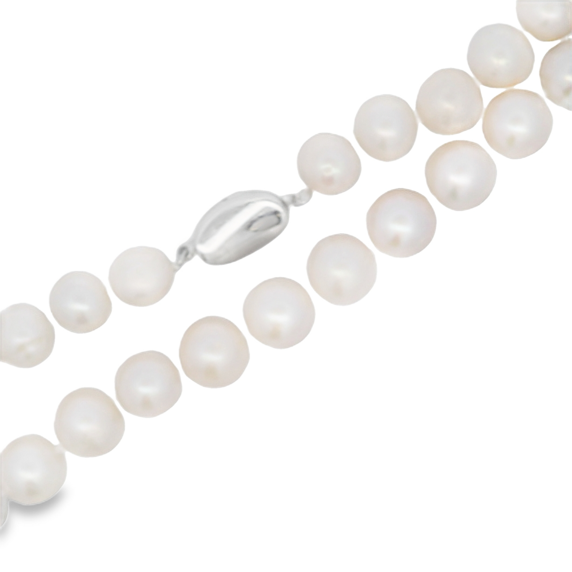 Pearls Knotted Strand with Box clasp in 925 Sterling Silver.