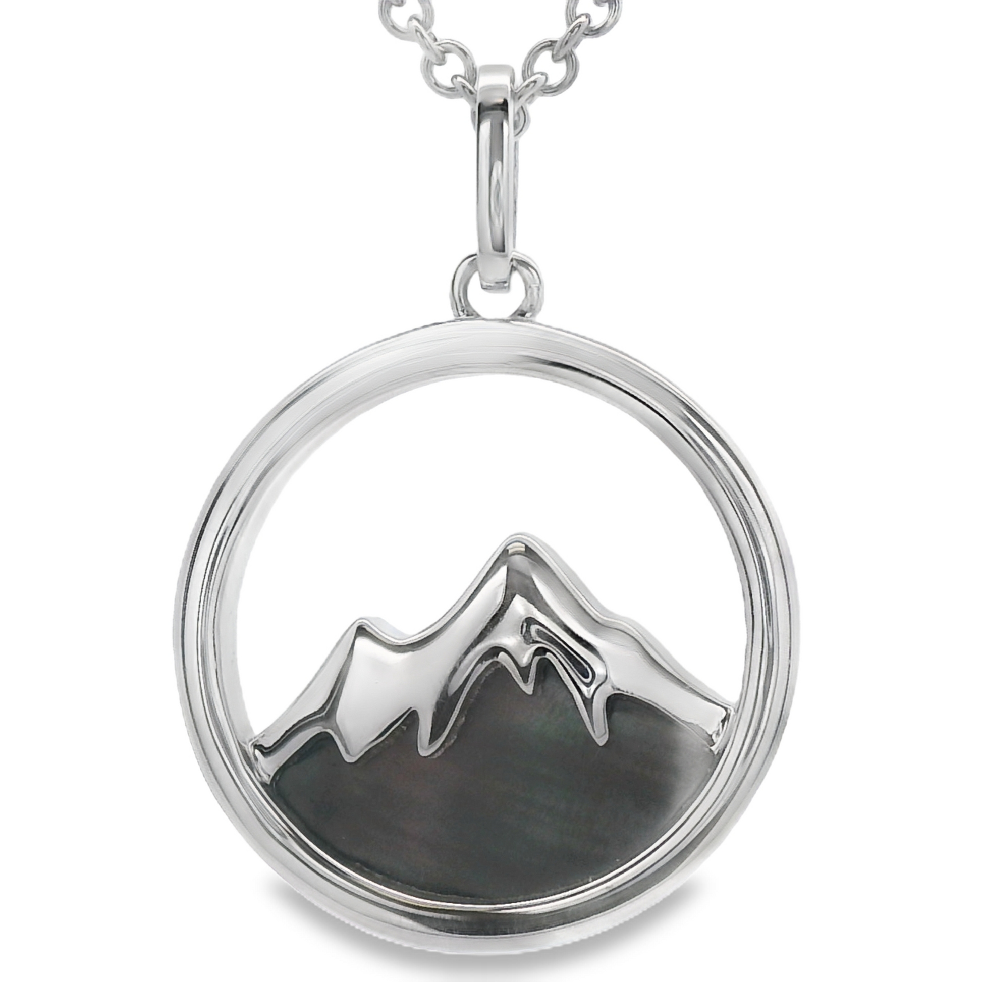 925 Sterling Silver Dangle Geometric Pendant Featuring Various Shapes Shaped Mother Of Pearl appearing Black in Color Set in Bezel Setting .