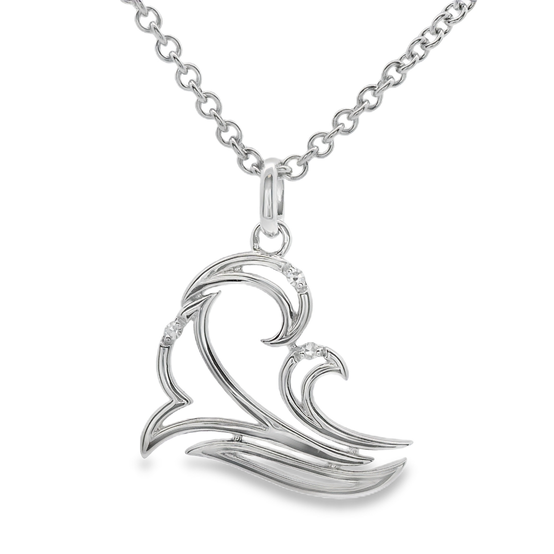 925 Sterling Silver Dangle Wave Pendant Featuring Round Brilliant Shaped Diamonds appearing G/H in Color With an Approximate Total Weight of 0.05cts Set in Surface Prong Setting .